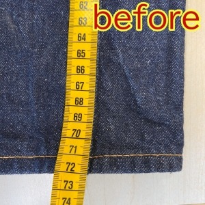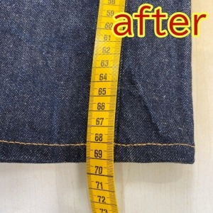 お直し工房です。当店では、お客様の大切な衣類のクリーニングだけでなく、お直しも承っております。今日は、当店でお直ししたこちらのジーンズ・丈上げサービスのご紹介です。