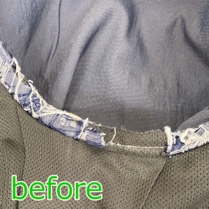 当店のジャケットの脇や裏地の擦り切れの解消サービスでは、擦り切れた箇所に専用のガードを裏地で作ります。このガードは、擦り切れを防ぐだけでなく、裏地のすべりを良くして着心地をアップさせます。誤って手を入れることも無くなります。また、脇の擦り切れ個所には縫い付けを施して、さらに強度を高めます。これにより、ジャケットの寿命を延ばすことができます。私たちはジャケットの魅力に共感し、お客様のお困りに応えるために、ノウハウを磨きながら、自信を持ってサービスを提供しています。